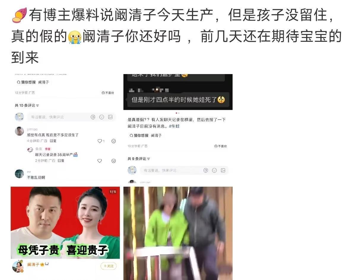 012025年12月23日,多数爆料称阚清子于当日坐褥,但更生儿因器官缺失(如无膀胱、肛门)及36周早产导致早死。