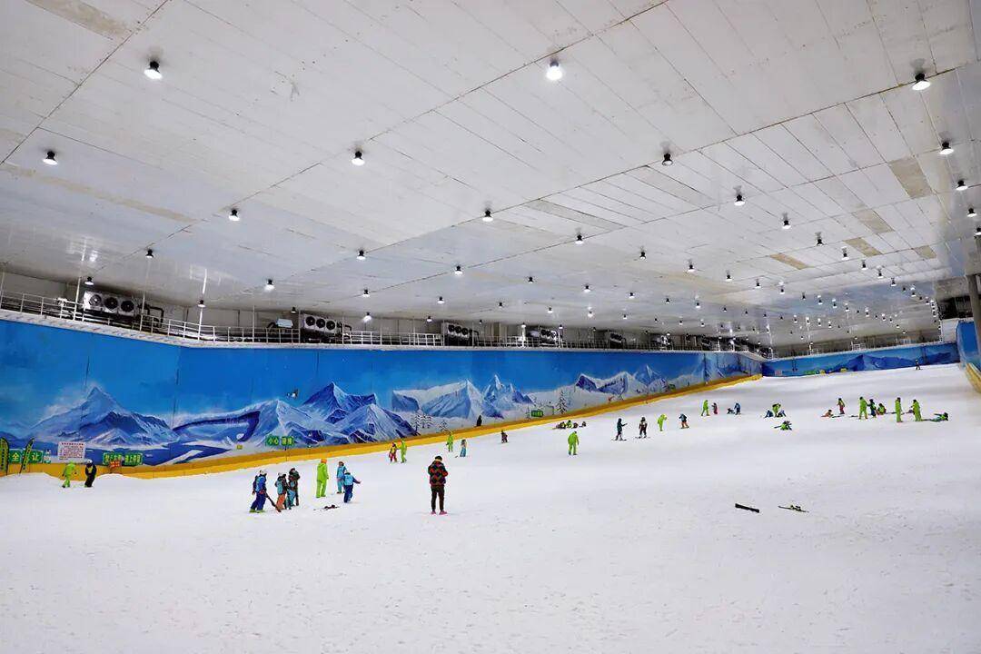 旅客在关岭奇缘谷冰雪小镇体验室内滑雪