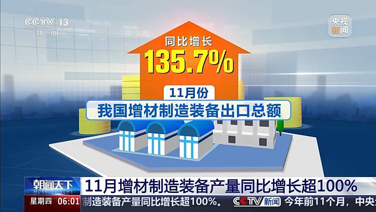 增速亮眼!11月3D打印装备产量同比增长超100%